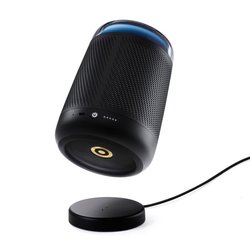 リチウムイオン充電池を搭載し、最大約10時間のワイヤレス再生が可能なため、リビングに据え置くだけでなく、家中のどこにでも持ち運ぶことができる。また充電用のクレードルを同梱しており、ACアダプタとUSBケーブルを接続しておくことで、本体をクレードルに置くだけで充電が行える。