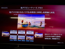 また、通常の地デジ放送用に独自のアップコンバート技術「地デジビューティーX PRO」を採用。通常1,440×1,080解像度で放送される地上デジタルの映像を、1,440×1,080→1,920×1,080→3,840×1,080→3,840×2,160と段階的に超解像技術を適用し、スケーラーで拡大するのではなく、それぞれの段階でしっかりと超解像技術で処理をすることにより、地上デジタル再生においても高いクオリティでの4K視聴を可能にした。同時にノイズをアクティブに抑制し、MPEG特有のノイズを抑制しつつ、解像度を向上させることも行っている。