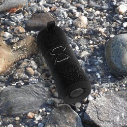 本製品は、IP67の防水・防塵性能をもつBluetoothスピーカーで、水に落としても沈まない設計とアピールされている。また、耐衝撃性にも優れ、米国国防総省が制定したMIL規格「MIL-STD-810G」に準拠。1.2mの高さより鉄板に26方向から落下させる試験をクリアしている。