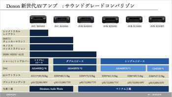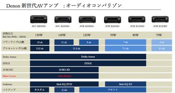 デノンのAVアンプは、今回登場したAVC-X6500HとAVR-X4500Hを合わせて、合計6機種での展開。全モデルが最新世代へと刷新された。AVC-X6500Hはこの中で準フラグシップという位置付けだ。価格はトップエンドAVC-X8500H(13chアンプ搭載)が48万円、AVC-X6500H(11chアンプ搭載)が32万円、AVR-X4500H(9chアンプ搭載)が17万円となる。