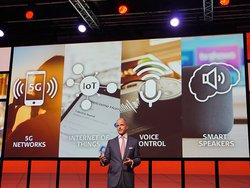 プレゼンテーションには、まず最初に、昨年に続きドイツ民生通信エレクトロニクス協会(gfu)のHans-Joachim Kamp氏が登壇。スマートフォンやウェアラブルデバイスの状況も紹介しつつ、「コネクテッド」「UHD」「ボイスコントロール」「3Dサウンド」などといったキーワードが今年のIFAの主なトレンドになるだろうとした。