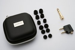 3機種共、ケーブルブランド“NULL AUDIO”の5N純度銀メッキ銅導体を採用したケーブル「Ethos」を付属。その他、シリコン/フォームタイプのイヤーチップ(6ペア)、キャリーケース、標準変換プラグなどを同梱。なおクリーニングツールは同社カスタムIEMのみの付属品のため、ユニバーサルモデルには付属しない。また、本体保証は1年間、付属ケーブルは初期不良の2週間のみと期間が異なるとのこと。