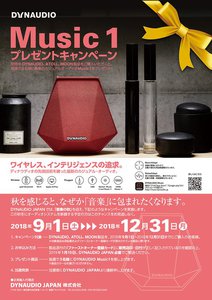 DYNAUDIO JAPANは、2018年9月1日(土)から12月31日(月)の期間中に同社取り扱い製品を購入すると、抽選で3名様にDYNAUDIOのワイヤレススピーカー「Music 1」をプレゼントするキャンペーンを実施する。