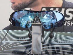 参考出展された「OPTISHOKZ」は、この骨伝導Bluetoothイヤホンとサングラスを一体化。紫外線からの目の保護を兼ねた製品となっている。また一体化により、サングラスのツルとイヤホンの耳掛け部の干渉が起こらなくなるのも利点と言える。