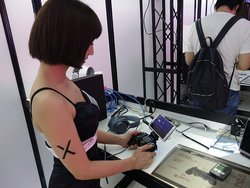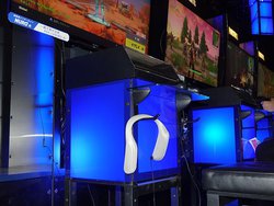 さまざまな新作ソフトを試遊できるPlayStationブースには、肩乗せ式 “ウェアラブルネックスピーカー”「SRS-WS1」を装着して遊べるタイトルも。以前に紹介したように(関連記事:ソニーの肩のせスピーカー「SRS-WS1」はゲームとの相性◎! 東京ゲームショウ来場者の“生の声”)、ゲーム用途での相性の良さも確かめることができるようになっている。