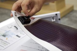 またクリーンエネルギー分野の新製品では、USB接続端子を備えたソーラーシートを展示。ソーラーシートは、FWAVE(株)の軽量・薄型のアモルファス太陽電池と、同社のスクリーン開発で培った巻き取り機構技術を活用したもので、丸めて保存でき、持ち運びにも便利な製品。新モデルでは電圧の安定性を高めたことで、スマートフォンなどの充電も可能となり、新たにUSB接続端子も装備。災害時などにも活躍しそうな製品だ。現時点では発売日や価格は未定とのこと。