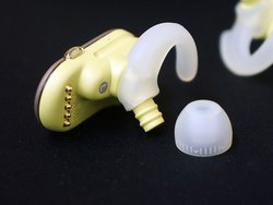 本体ノズルはイヤーピースの深さを2段階から選べる機構となっており、より深い位置まで押し込んでイヤーピースを装着するか、浅めの位置にするかを選べる。さらに、ヘッドホン部への水の侵入を防ぐ構造を採用することで防水性能を高める、水泳用イヤーピースも付属する。