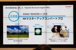 本日9月27日に行われた製品の発表会では、同社スマートTVS事業本部 本部長代行 加藤直樹氏は「2020年度には新4K8K衛星放送対応テレビは90%に拡大すると予想している。この動きに対して、シャープでは対応機のラインナップを強化し、現在の国内テレビシェアNo.1の維持を目指して取り組んでいく」と語られた。