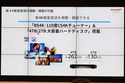 シャープ、新4K衛星放送を4K画質で視聴/録画/ダビングできる「AQUOS 4Kレコーダー」