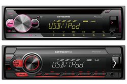 DEH-4500/MVH-3500は、通信機能を省いたスマートフォンリンク非対応のエントリーモデル。USB/iPhone/iPodの接続に対応したフロントUSB入力端子を備え、操作にはリング形状の大型キーを採用する。LEDはDEH-4500が22万色のマルチカラー、MVH-3500がレッドカラーとなる。