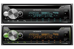 DEH-6500/DEH-5500/MVH-7500SC/MVH-6500/MVH-5500の5機種は、iPhoneやAndroidスマートフォンと連携できる「スマートフォンリンク」対応モデル。専用アプリ「Pioneer Smart Sync」をインストールすることで、スマホ内のカーナビや音楽、メッセージなどのアプリや、電話の発受信、各種機能を声で呼び出せる音声認識機能など、車載機の操作ボタンから操作することができる。