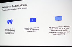 マクリントック氏は「様々な調査を行った結果、動画音声については60ms以下、カジュアルゲームにおいては50 - 80msの間であれば適切に対応できると分かった。Bluetoothにはディレイレポーティング機能もあり、データをバッファーすることによって遅れを調整できるが、バッファー分のメモリを使用することはコスト増加に繋がり、またゲームに対しては原理的に使うことはできない」とし、低遅延コーデックの重要性を説く。また、低遅延の状態を安定して保つことも重要であるとし、ビットレート下限の280kbpsはその点を重要視した作りになっているとのこと。