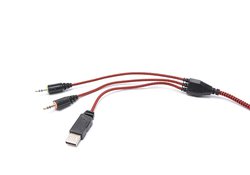「TT-EP005」は、7.1chバーチャルサラウンド機能を省くなどでさらに安価な価格帯を実現したモデル。筐体部のLEDライトへの給電用USB端子と、PC接続用の音声端子およびマイク端子を装備していることに加え、3.5mmステレオミニ端子アダプターも付属する。
