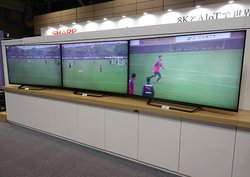 8Kマルチチャンネル同期伝送は、8Kカメラ3台での同期撮影した映像を、5Gを活用して8Kマルチ画面として表示させるというもの。例えば、サッカーで最初のパスを出すA選手、そのパスを受けるB選手、B選手からさらにその先のパスを待つC選手といった別々の選手の動きをそれぞれ8Kで撮影し、視聴者側にはマルチ映像として表示させる。2020年の5Gサービスに向けて様々な5G対応機器を提供予定だという。