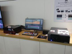 また、映像制作者への8Kワークフローも提案。アストロデザインの転送ボックス「HB-7517」やグラスバレーのワークステーション「HDWS 8K」などと組み合わせることで、8K 60p映像を高速レスポンスで編集可能だとアピールしている。