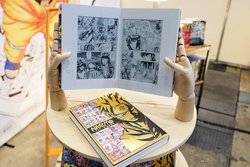 プログレス・テクノロジーズは、マンガ全巻を “1冊” に収録する電子書籍「全巻一冊」をデモ。これは本を模した本体デバイス(¥35,000/税抜)に、別売される専用コンテンツカセットを差し込むことで、紙の本を読むような感覚でマンガを楽しめるというもので、現在は『NARUTO-ナルト-』『シティーハンター』『北斗の拳』『銀河伝説 WEED ウィード&オリオン』『ミナミの帝王』『沈黙の艦隊/ジパング』がラインナップされる。