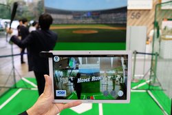 KDDIやNTTドコモは、5G回線が実現する様々なエンターテインメントについて体験ブースを設けていた。XRグラスを用いた体験型スタジアムでは、XRグラスを装着することでバーチャル(AR)の野球体験が可能。ピッチャーが投げてくるボールを打ち返す動作をすることで、タイミングによってホームランやヒットなどの結果がフィードバックされるほか、同じ場所で観客としてその様子をXRグラスを通じて観戦することもできた。