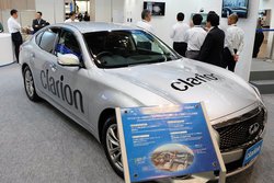 クラリオンでは、カーオーディオの最新技術として、振動スピーカーを活用した「ドアスピーカーレスオーディオシステム」が体験できるデモカーを用意していた。