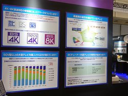 ブースでまず来場者を出向かえるのが、本日シャープが発表した世界初の8Kチューナー内蔵テレビ“AQUOS 8K”。同製品を用いて、12月1日からNHKがスタートさせる8Kチャンネルをアピールしている。