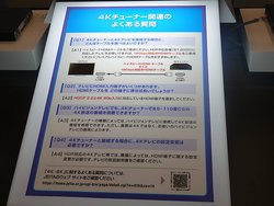 こうした8K、4K展示に加え、ハイレゾ体験ブースも展開。テクニクス製品で組まれたデモシステムで、ハイレゾと非ハイレゾ音源の聴き比べが行える。非ハイレゾ音源は「サブスクリプション型音楽配信で主流になっている、256kbpsで圧縮したMP3でのリッピング音源にしている」という。なお、ハイレゾ体験コーナーは入口が8K4K関連展示の裏側となっていて少々分かりづらいので、ブース見学の際には注意されたい。