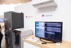 COCORO+コーナーには、洗濯機と連携する「COCORO WASH」、エアコンや空気清浄機と連携する「COCORO AIR」、オーブンレンジや冷蔵庫と連携する「COCORO KITCHEN」に対応した製品が展示され、実際に連携を取れるようになっている。