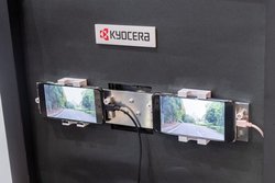 京セラブースでは多数の技術・部品が公開されていたなか、「リアルタイム画像補正技術」「オーディオ・振動アクチュエーター」に目が止まった。リアルタイム画像補正技術は京セラとKDDI総合研究所の共同研究で、移動中の車の中でブレない映像を楽しむための技術。加速度センサーとジャイロを用いることで実現している。この技術はスマートフォンでの動画再生や、車のリアモニターでの使用が期待されるという。