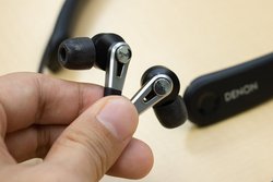 イヤホン部(DENONロゴが入っている側)にはマグネットが配置されており、音楽を聴かないときはイヤホン同士をくっつけて固定することができる。また、マグネットはネックバンドの先端にも配置されており、イヤホン部をネックバンドに固定することも可能だ。