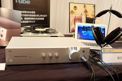 コルグはDSD 11.2MHzによる録音/再生に対応するUSB-DAC/ADC「Nu 1」を使用したヘッドホンリスニングをデモ。オーディオ製品として初めて “コルグだけが出せる音” に挑戦したという、日本製の直熱双三極管「Nutube」を搭載したNu 1で、来場者は思い思いの音楽を試聴していた。