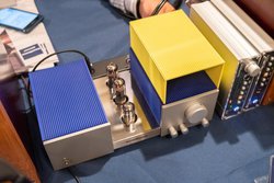 城下工業の自社ブランド“SOUND WARRIOR”では、開発中の真空管アンプ「SWL-AA1」、パワーサプライ「SWD-PS10」が参考出展さえれた。SWL-AA1は、同社の真空管アンプ「SW-T10」をベースにした製品で、ソニーで多数のデザインを手がけた天沼昭彦氏がデザインを担当した。若い世代などもターゲットしており、カラーバリエーションについては検討中とのこと。会場ではベース色となるブルーのほか、イエローが用意されていた。年内の発表を目指しているという。