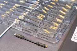 ORBでは、12月に発売予定のLightningコネクタ製品を参考出展。Clear force Lightning-2.5φと、Lightningから2pin(2種類)/MMCXに変換するケーブルの計3点が出店されていた。