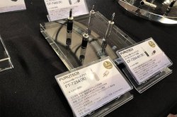 フルテックでは現行製品を一斉に展示。同社いわく、プラグ製品で人気なのはカーボンタイプとのこと。高級感ある外観と、振動を抑えることで歪みの少ないクリアな再生が可能な点も人気の理由としている。またプラグなどのポータブル製品向け製品のほかにも、電源タップ/ケーブルなども出展している。