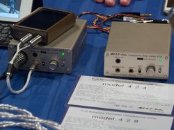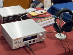 マス工房は、同社が制作するヘッドホンアンプを出展。ブースでは、フルバランスのポータブルヘッドホンアンプで4.4mmジャックを搭載する「model428」、XLR端子を搭載する「model424」の2モデルを試聴できた。また、27日午後には据え置き型の「model406」もブースに到着。14階 S’NEXTブースにも提供しており、finalのヘッドホン「D8000」と組み合わせて試聴することもできる。