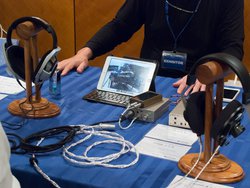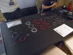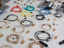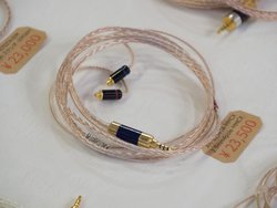 主にオーディオケーブルを扱っているオーディオみじんこは、同社製作のヘッドホン/イヤホンケーブルを出展。通常販売しているモデルの他、イベント時など限定で販売しているというケーブルも取り揃えている。