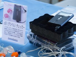 ブースではj-phonicの試聴のほか、一部の同社製品に内蔵されたマイクから外音を取り込み、再生中の音楽と立体的にミックスする「3D Active Ambient」、イヤーモニターから出力されている再生音をデシベル表示できる「dBチェッカー」など、主にプロ向けに供給されている製品も試すことができた。