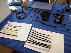 このロボ電は、ウェアラブルデバイスや衣服など様々なものに活用できるが、今回ヘッドホン祭に出展したのは、これをUSBケーブルやイヤホンケーブルなどに応用することをアピールするため。ロボ電を使えば、これまでにないかたちのケーブルが実現しそうだ。