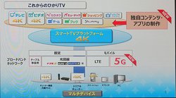 そして「ひかりTVは放送とVODの両方を提供しており、4Kにも積極的に取り組む最大規模のサービスだ」とアピール。「NTT東西の専用網を使った配信なので配信品質もセキュリティの質も高い。スマートフォンからも利用できる」と続け、「サービスの中心にはスマートTVプラットフォームがあり、これをすでに4K対応で構築できているのが強みだ」とした。