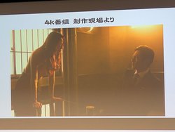 また、「例えば笑みの表現で、口角が上がるような演技の場合、クローズアップで撮ると頬の微妙な動きも伝わる。これは2Kでは伝わりにくい部分だ」など、具体的な演出上のメリットも紹介。「怒った顔も細かな表情の動きがちゃんと分かる」とし、そうしたより細かい演出をするため出演者に求められる演技の水準も上がり、「上手な人はより上手に、そうでない人はそれなりなのが分かるようになってしまう(笑)」とも述べた。