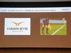 そして、その効率化の成功事例が今年開催されたサッカーのロシアワールドカップだと言及。カメラやモニターの大量提供、および「SR Live for HDR」での4K HDRとHD映像を同時制作などで、全64試合/12会場で大会の撮影/オンエアに貢献したと紹介した。