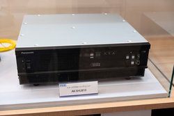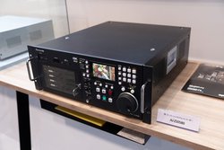 なかでも、8K用の機器を正面に展示して大きくアピールした。8Kスーパーハイビジョンレコーダー「AJ-ZS0580」は、8K用のカメラで撮影した映像をSDI×4本で接続し、P2カードと呼ばれる記憶媒体に記録するもの。このP2カードは1枚512GBで、これを4枚で1セットとし、このセットで8Kで1時間の録画ができるという。担当者によれば、このレコーダーはNHKが使用しており、フィギュアスケート「NHK杯」での8K撮影にも使用されるほか、12月から開始される8K放送でも活躍する予定だという。