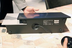 さらに側面にアナログ出力端子を新たに装備し、ユーザーが所有するスピーカーを用いた同時再生も可能にした。アナログ端子について斎藤氏は、従来ユーザーから「自宅にあるスピーカーも使って歌詞表示を楽しみたい」という意見があり今回新たに搭載したと説明する。