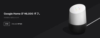Googleストアの公式ページにて、11月の第4金曜日(22日)に行われるブラックフライデーに関する告知がスタート。Googleのスマートスピーカー「Google Home」が、通常価格15,120円のところ7,120円のプライスオフで販売される。