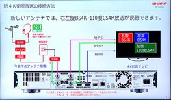なお新4K放送では従来からの右旋波に加えて新たに左旋波も使用するため、左旋波も使うチャンネルの視聴には左旋波の受信に対応したアンテナも必要。また、左旋波は右旋波よりも高周波帯域を使用するため、4K放送対応のブースターなども必要になる。