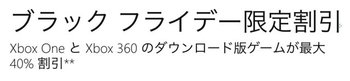 Microsoftでは、ゲームコンソール「Xbox One」が11月22 - 25日限定で7,560円引きの46,418円(税込)で購入可能。またXbox360のゲーム(ダウンロード版)が最大40%引きで購入することができる。詳細はこちらから。