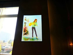 Casitaでは、3Fのメインダイニングの5箇所にエプソンのインクジェットプリンターで背景を印刷したパネルを壁掛けし、ここにプロジェクターを使った映像をマッピング、音楽に合わせて絵が動く演出を施す。