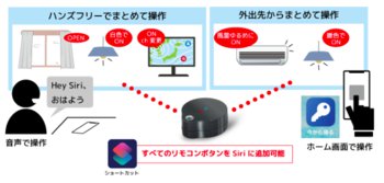 ラトックシステムは、スマート家電コントローラー「RS-WFIREX3」がSiriショートカットによる音声操作に対応。iPhoneやiPadに「ヘイSiri」と話しかけることで家電を操作できるようになった。