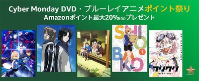 またFateやソードアート・オンライン、僕のヒーローアカデミアなど、対象のアニメ作品を購入すると、Amazonポイント10%がプレゼントされる「アニメポイント祭り」も実施。サイバーマンデー期間中に併行して開催される「ポイントアップキャンペーン」と合わせると、最大20%のAmazonポイントが付与される。