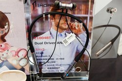 フリーウェイのブースでは1MOREの新モデルが参考出展された。完全ワイヤレスイヤホン「E1026BT」は7mmチタン・ダイナミックドライバーを搭載するモデルで、BluetoothはVer 4.2に準拠、SBCコーデックに対応する。発売は2019年初春を予定し、価格は10,000円前後となる見込みだ。ほか、ダイナミック×1とBA×1のデュアルドライバー構造を採用したネックバンド型Bluetoothイヤホン「E1004BT」は年内発売予定としており、価格は20,000円を超える程度とのこと。