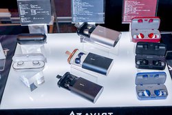 バリュートレードでは、昨日発表されたばかりのキズナアイとコラボしたBluetoothイヤホンが展示。そのほかAVIOTブランドの完全ワイヤレスイヤホンや、NuForce、SpinFitといった製品が登場している。