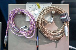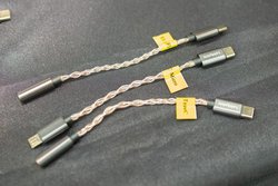 そしてlabkable-headfiのブースでは、来年に発売されるリケーブル「Golden Amethyst(111,300円前後)」「Golden Samurai(186,500円前後)」が展示。そのほか、USB-Cから3.5mm、USB-Cから2.5mm、USB-CからUSB microBといった変換ケーブル、バランス対応の4.4mmから2.5mmへの変換プラグといった新製品も展示されていた。