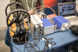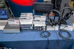 また銀座十字屋 ディリゲント事業部のブースでは、「スピーカー付きキャップ」なるものが展示されていた。Bluetooth接続のスピーカーで、帽子のつばの部分にスピーカーが仕込まれている。なおこちらは現状では販売の予定はなく、価格も決まってないとのこと。そのほか同ブースでは、難聴から耳を保護する耳栓「THUNDER PLUGS」や、384kHz/32bitに対応したペン型のDAC「Spectra」といった製品が展示されている。